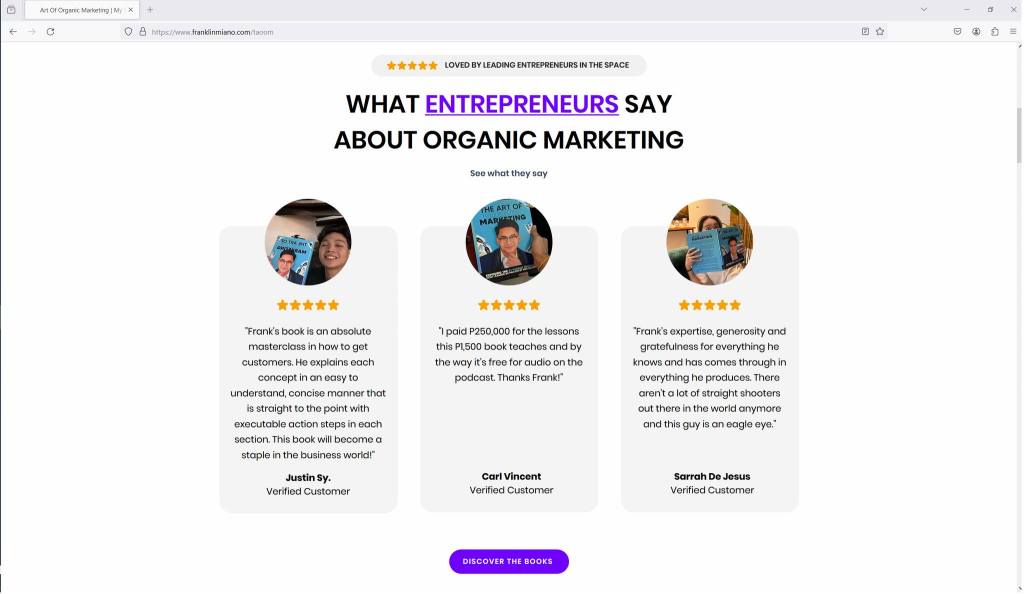 A content creator named ND.GG created a series of Facebook post that exposed several things about Frank Miano, from the website copying to the contents of his The Art of Organic Marketing.